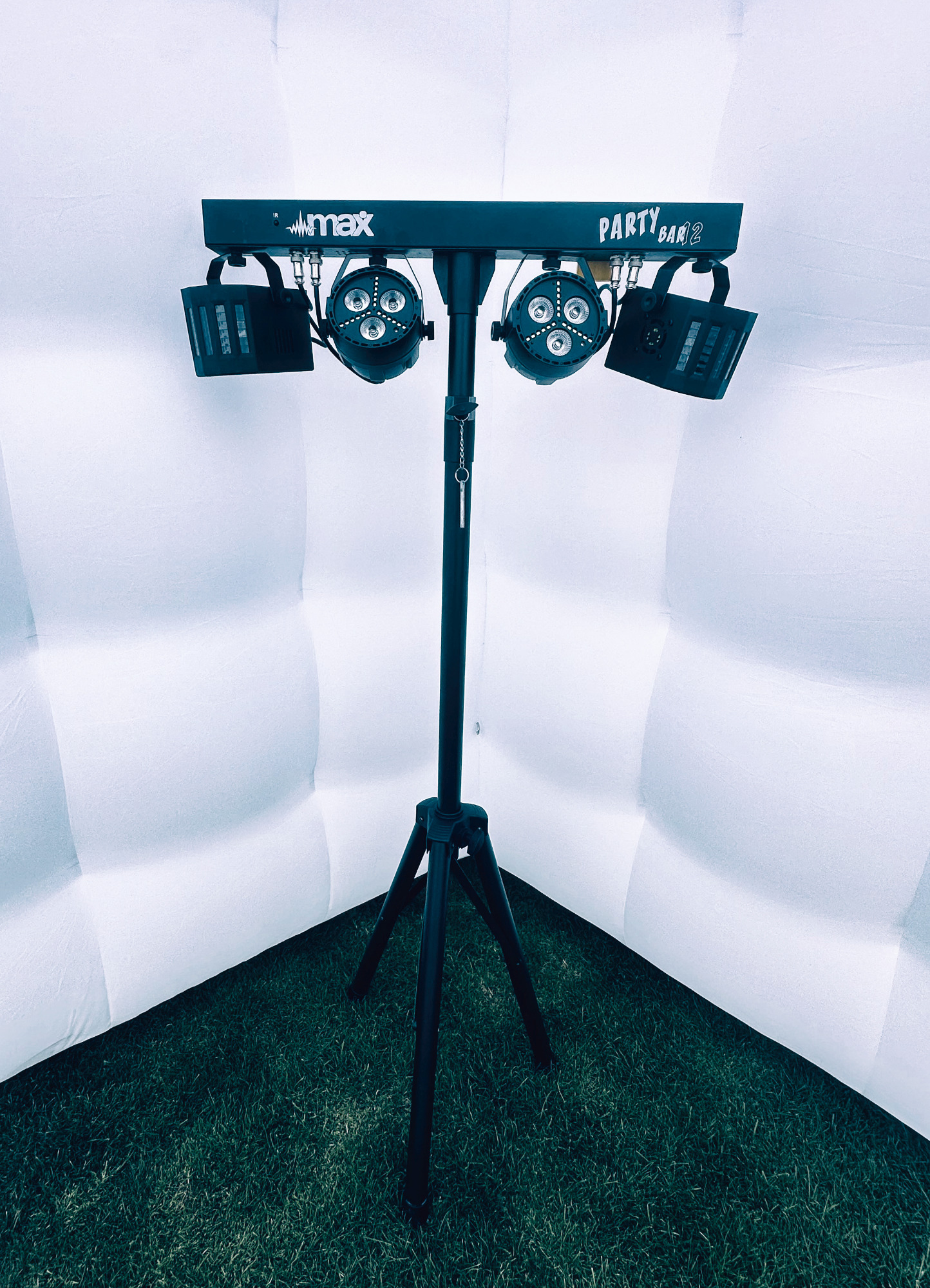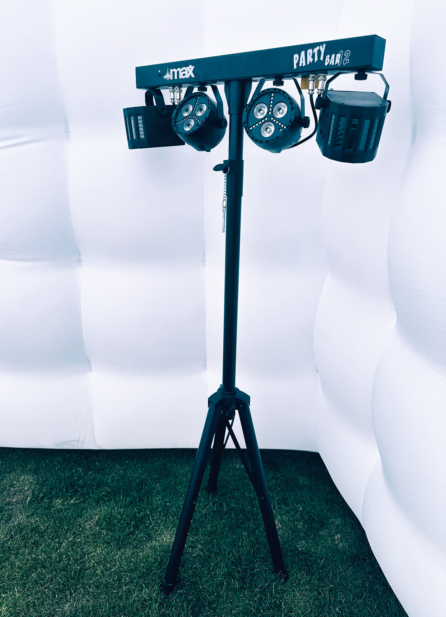 2 Scheinwerfer LED's RGB(farbig) und 18 Strobe LED's (weiß)