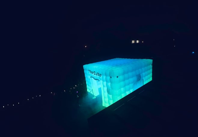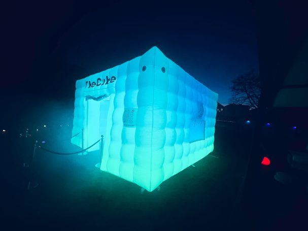 Unser PopUp Zelt ist in kürzester Zeit aufgeblasen und bringt die Party dorthin,